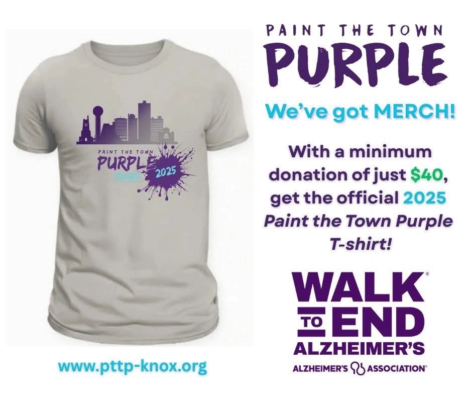 Paint the Town Purple (PTTP) is Knoxville's week-long campaign aimed to promote awareness and engage our community and local businesses to get involved in support of the Alzheimer's Association's largest annual fundraiser, Walk to End Alzheimer's.